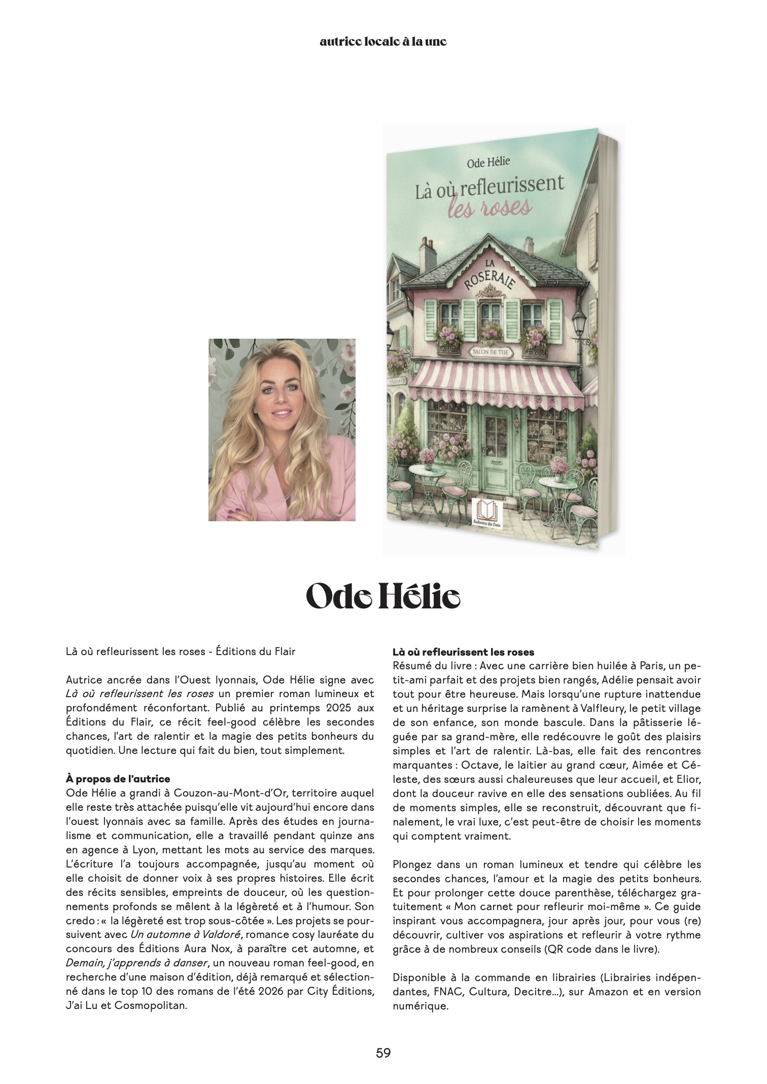 Après une carrière dans la communication à écrire pour les autres, elle se consacre aujourd’hui à l’écriture, avec l’envie de partager des histoires qui font du bien. Là où refleurissent les roses, son premier roman feel-good, aux éditions du Flair, incarne cette volonté de réconforter et d’évoquer des moments de vie authentiques et de résilience.